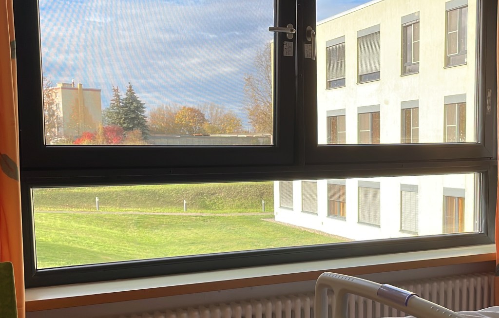 Gerade bin ich in Altscherbitz in der Neurologie angekommen. Empfangen wurde ich mit einem Rollstuhl, in dem ich nun sitzen darf, nach meinem mühsamen Herumtapsen. Ich bin froh, dass ich nun behandelt werde, nachdem sich mein Befinden, dass mit einem Kribbeln und einer Lähmung im rechten Bein begonnen hat zunehmend verschlechtert hat. Ich habe angefangen, mich auf Hilfe, Linderung und Heilung zu freuen, habe humorvolle Textnachrichten verschickt und auf typisch heinzsche Art gewitzelt.