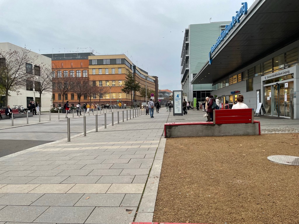 In der Liebigstraße, vor Haus 4 des Uniklinikums