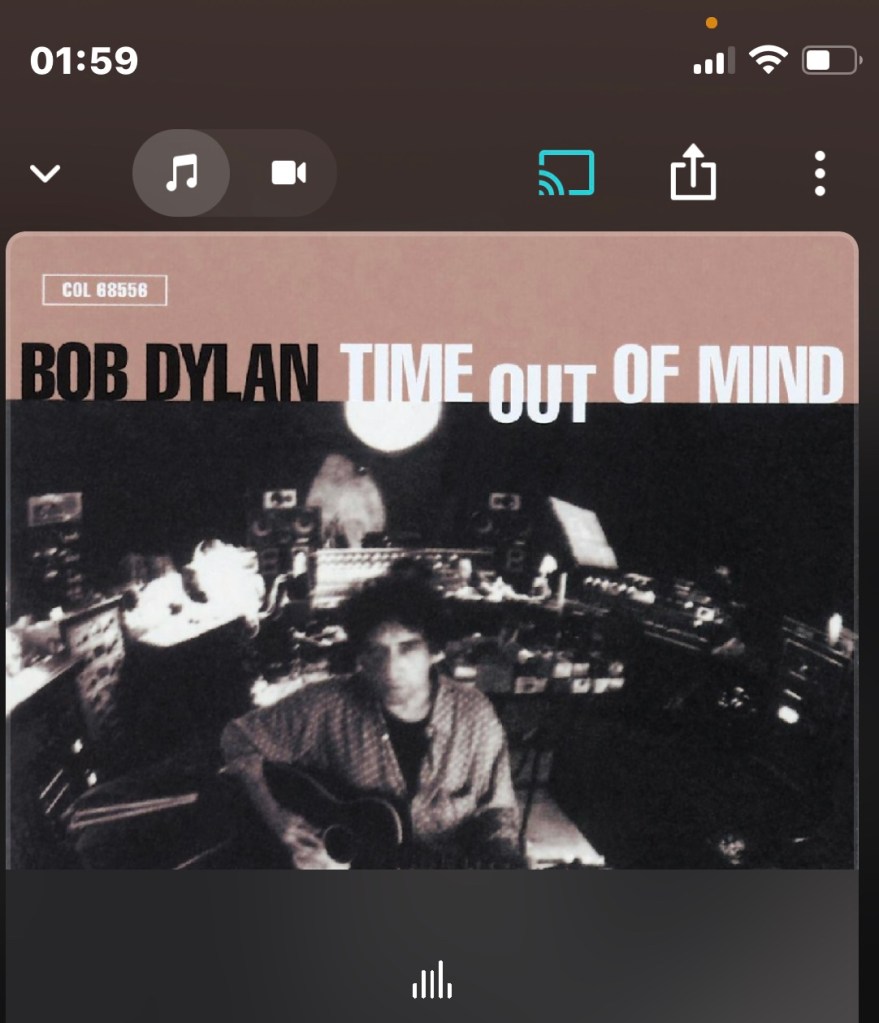 Und dann ist da plötzlich auch Bob Dylan und ich höre, wie er Not dark yet singt. Irgendwo in der Ferne rollt ein Zug vorbei. Das Feuer lodert etwas auf und ich sehe jetzt auch J. in der Nähe sitzen. Er hält ein großes, irgendwie mystisches Bild in der Hand, auf dem ein kleines Stück blauer Himmel zu sehen ist.